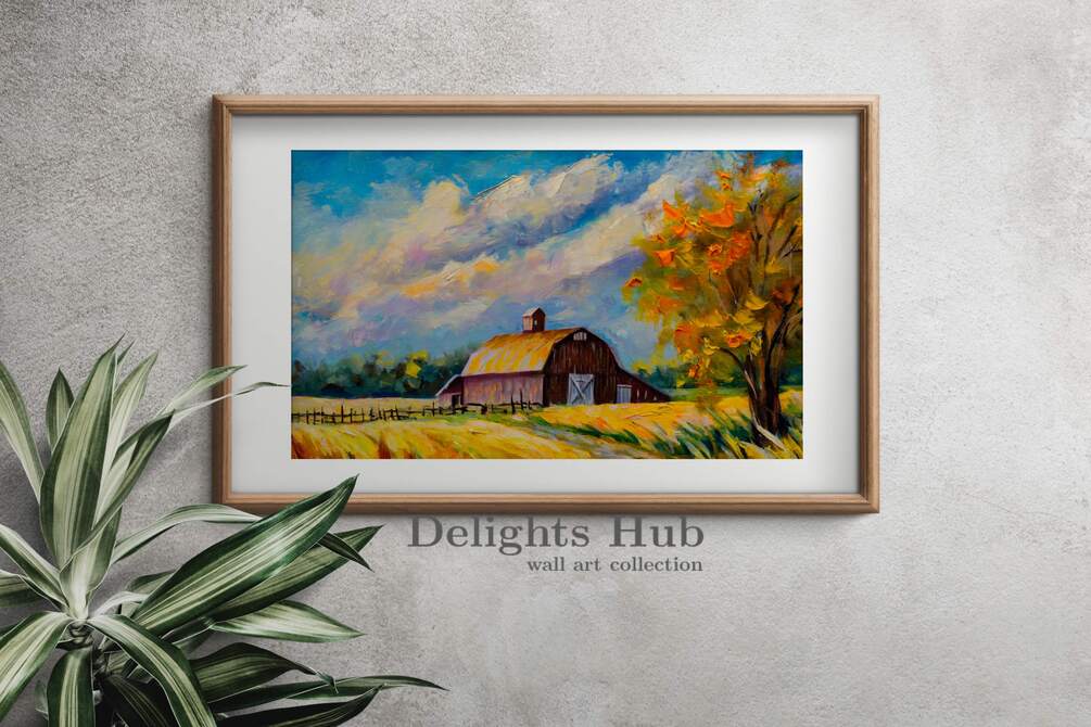 Rustic Landscape Barn Painting | Warm Tone Print | Digital Prints | Wall Art Delights Hub | A10